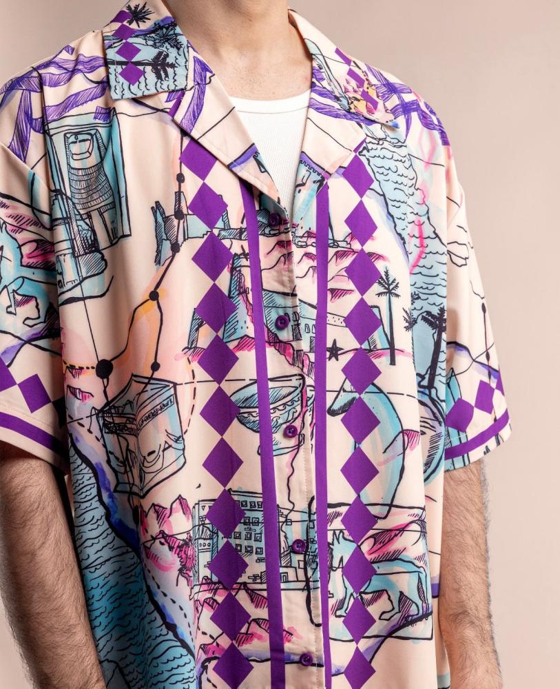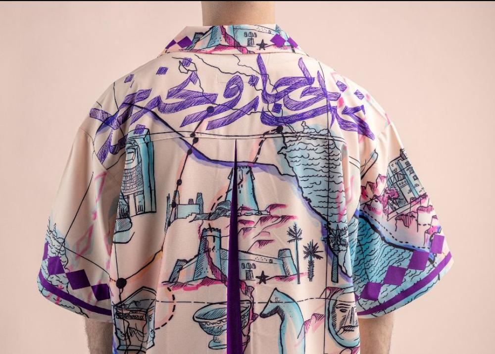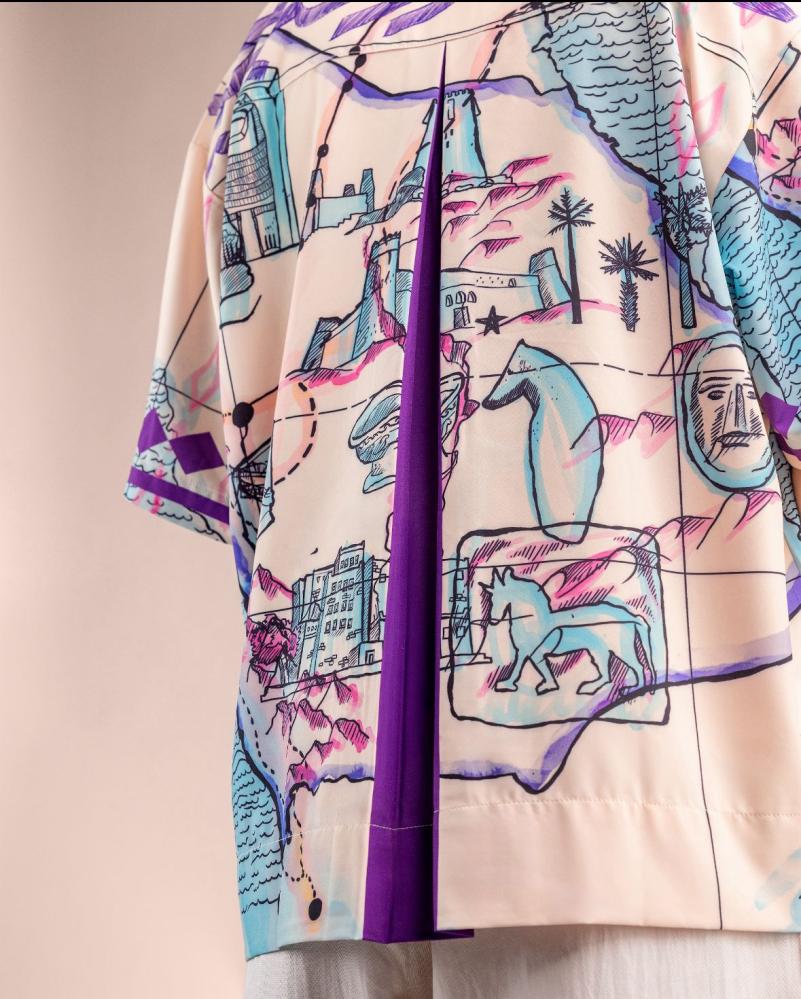 Arabic: A modern T-shirt with patterns inspired by Earth's civilizations, combining bright colors and a stylish cut, suitable for both sexes. English:...
